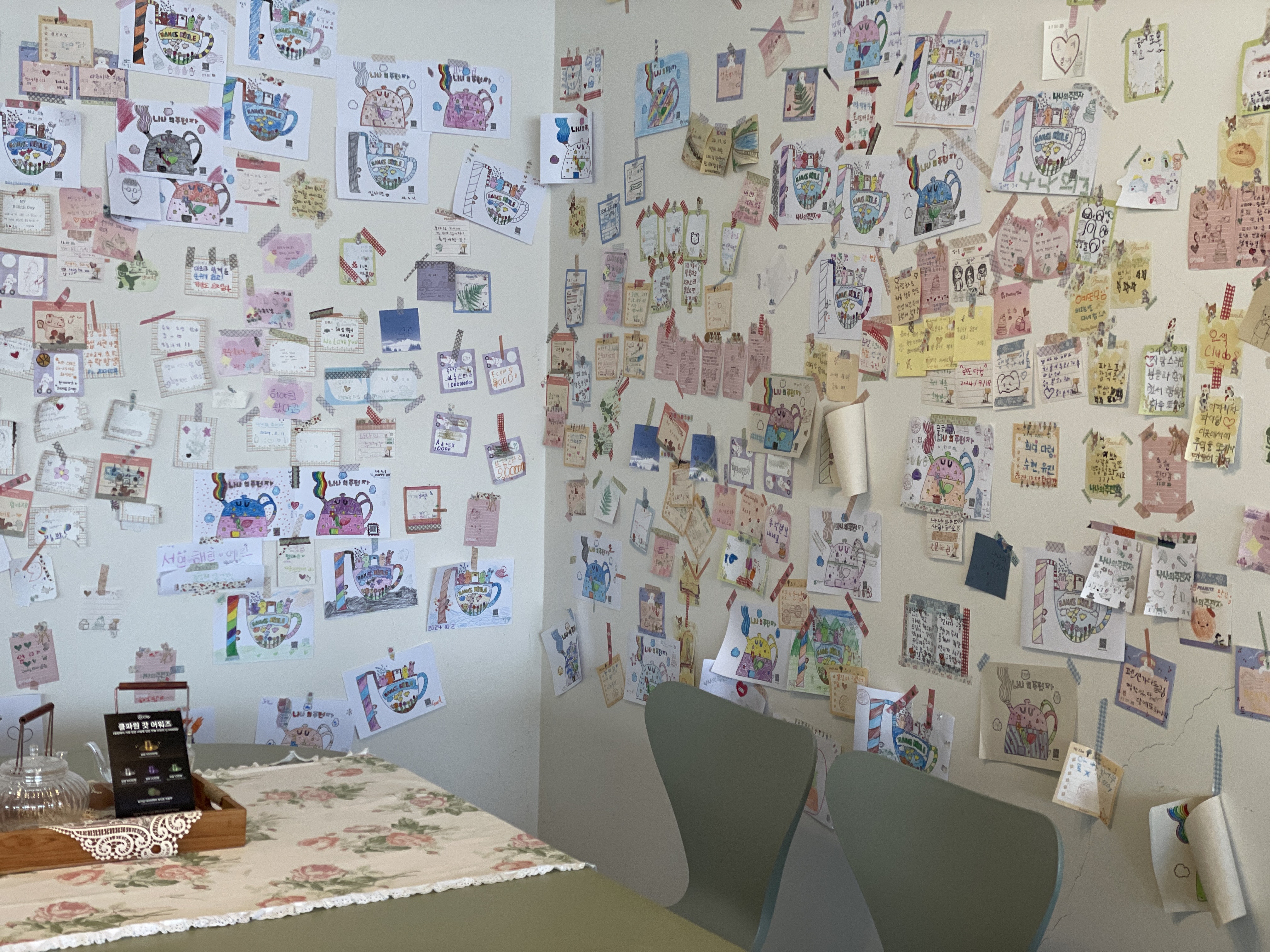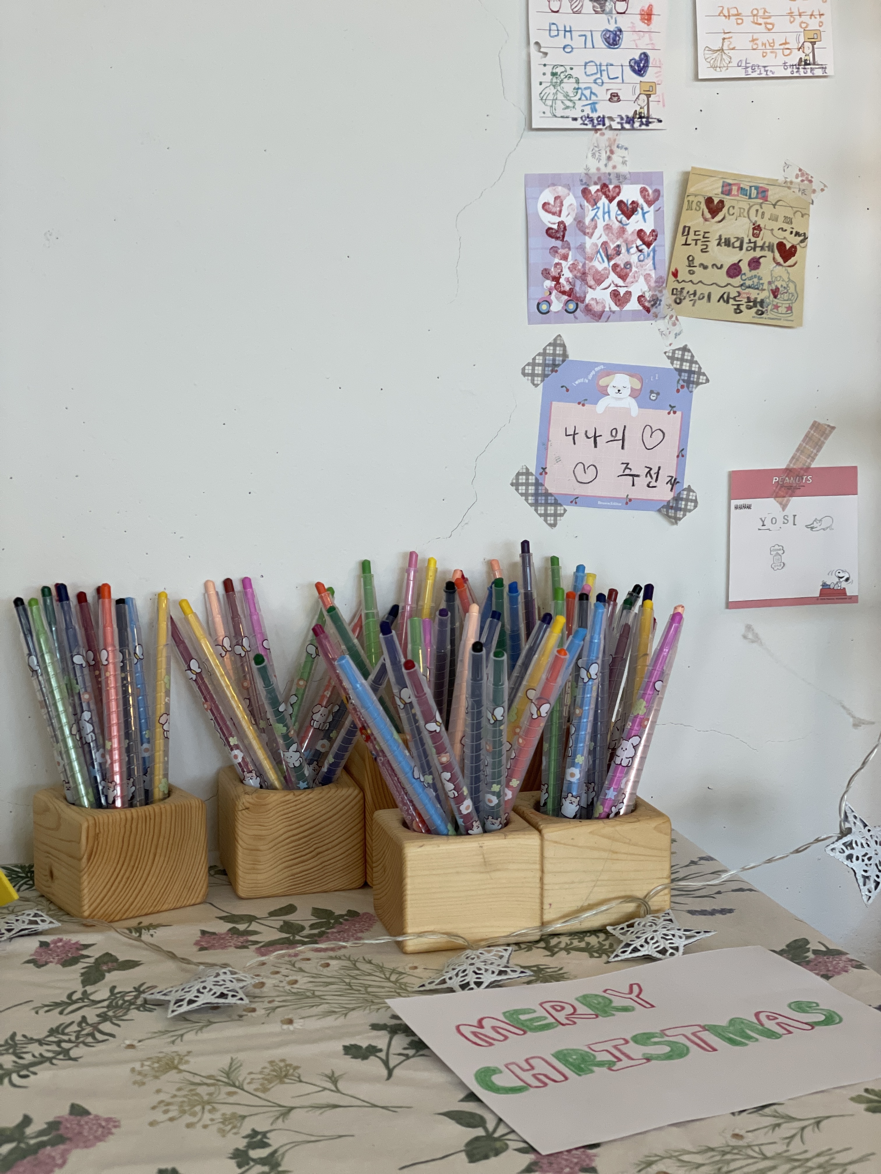 색연필로 이쁘게 메모장을 꾸며서 벽에 붙여놓을 수도 있고요.