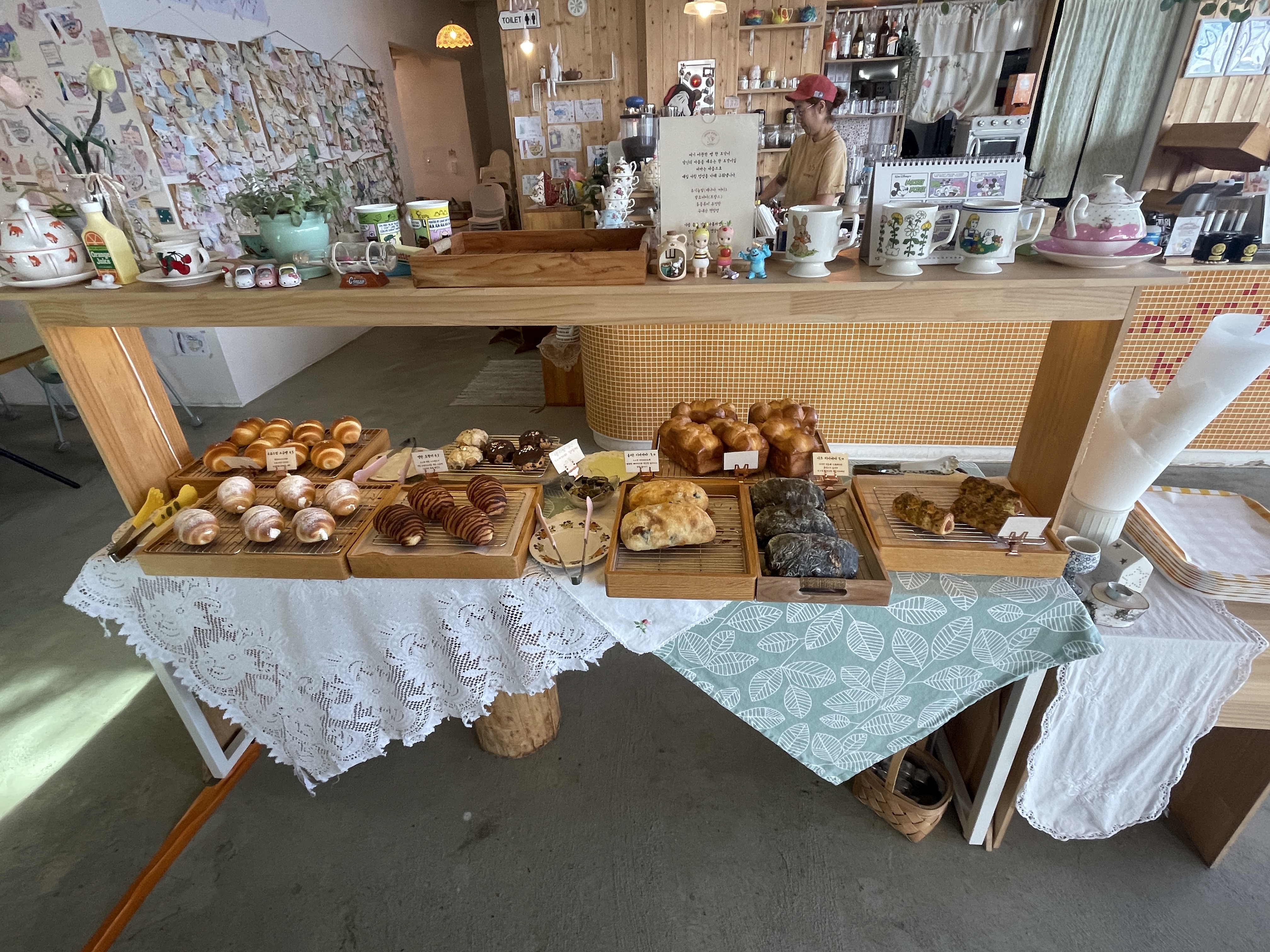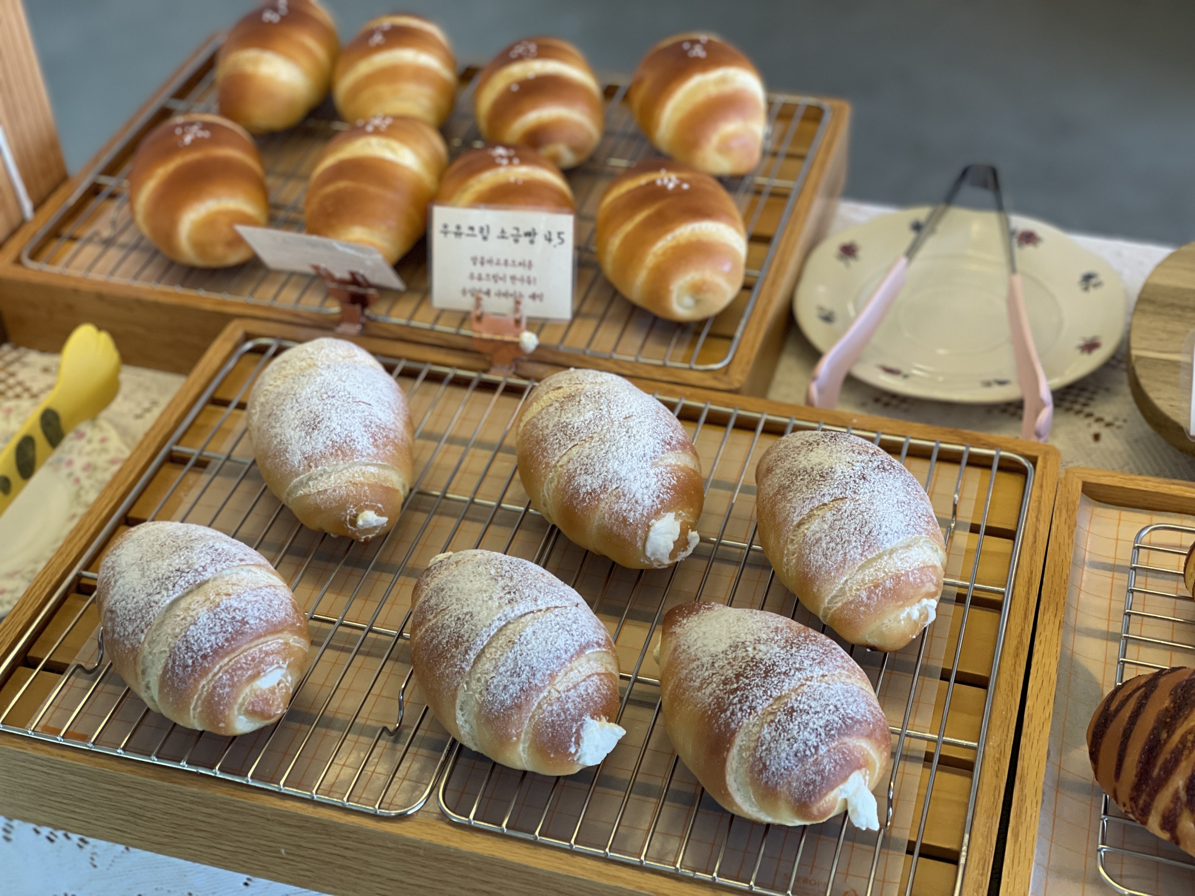 빵도 먹을 수 있는데요, 저는 카페에서 먹는 빵에 대한 기대치가 높지 않은데 나나의 주전자의 빵은 빵집에서 사 먹는 것 같이 맛있는 빵이었습니다. 소금빵을 좋아하는데 집에 포장해 가서 먹었는데 매우 맛있었습니다. 빵도 먹어보는 것을 추천드려요.