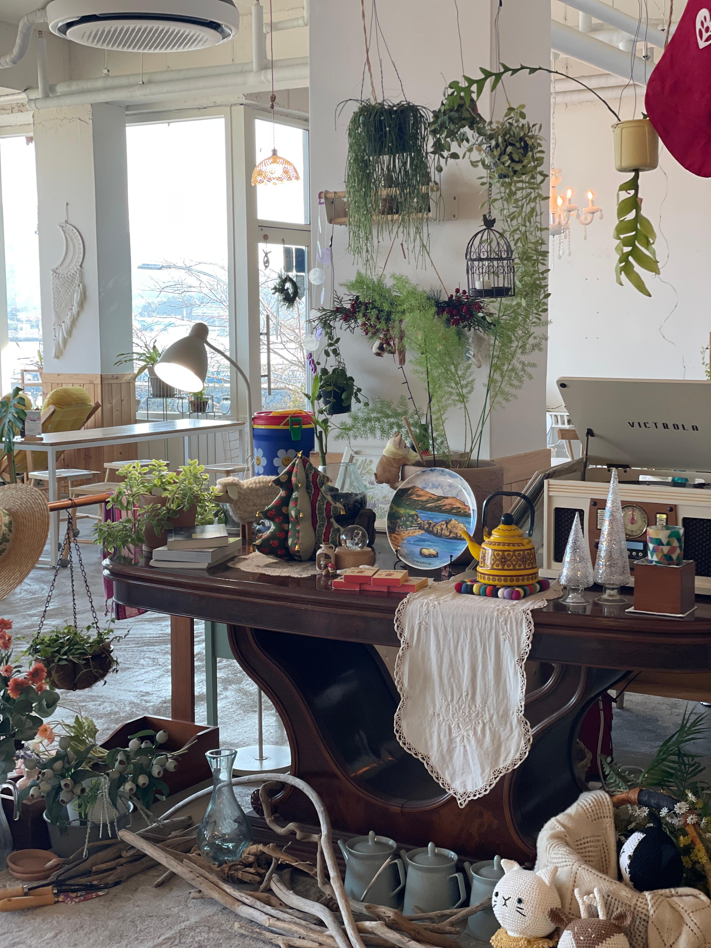 나나의 주전자를 방문한 이유는 아늑하고 따뜻한 분위기 때문이었는데요. 가게 안으로 들어가자마자 정말 잘 선택했구나 하는 생각이 들었어요. 제가 방문했을 때는 크리스마스를 앞둔 12월이었는데요. 예쁜 크리스마스트리와 아기자기한 소품들이 너무 잘 어울리는 공간이라는 생각이 들었어요. 모든 공간 하나하나 신경을 써서 꾸미고 소품을 비치했다는 생각이 들었어요. 이런 감각 나도 갖고 싶다....